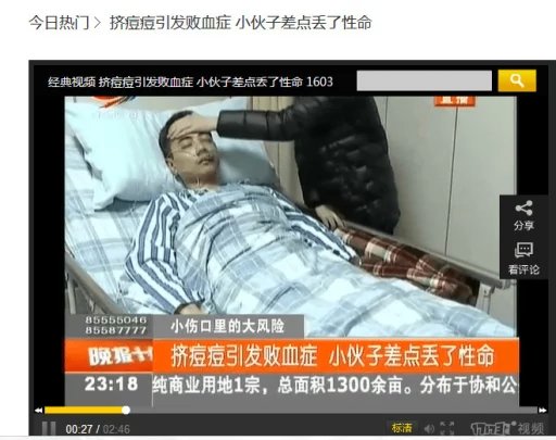 喻先生就因为抠了一个脸上的痘痘,被确诊为败血症,差点丢了性命
